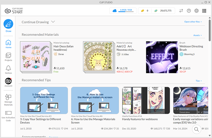 Kho tài liệu khổng lồ (Clip Studio Assets)